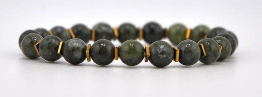 8 mm Green Jade w/ Gold Spacer Bracelet