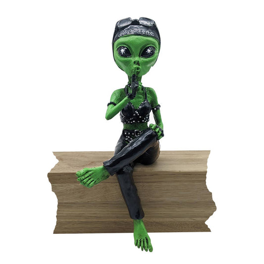Alien Ledge Loungers “Biker Dude & Babe” 10" H tall Figurine Set: Green