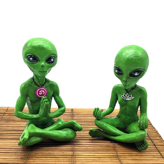 Alien Invasion "Zen and Yoga” Couple Meditating Figurine Set: Green