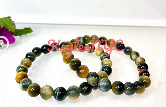 6 Pcs Natural Dream Tiger Eye 8mm 7.5” Stretch Bracelet