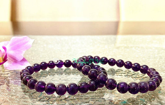 Natural Dark Amethyst 8mm 7.5” Crystal Stretch Bracelet