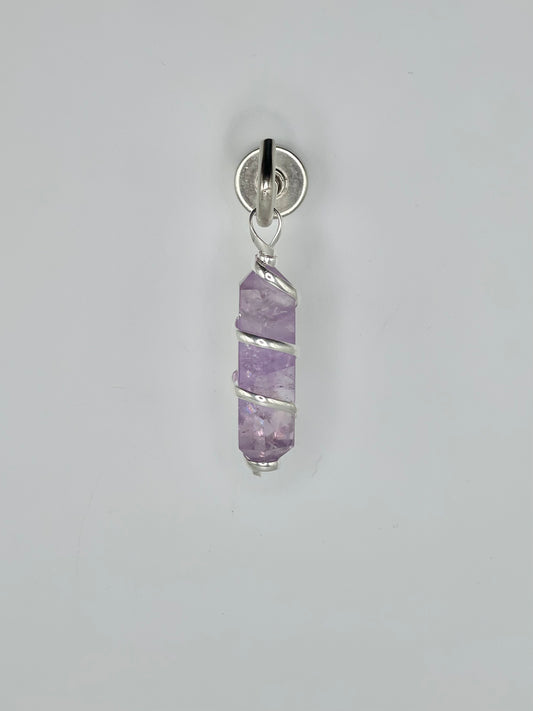 Natural Amethyst Double Pointed Pendant Metal Wrapping 2 in