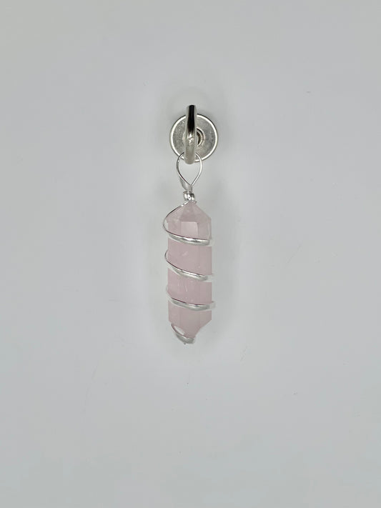 Natural Rose Quartz Double Pointed Pendant Metal Wrapping 2 in
