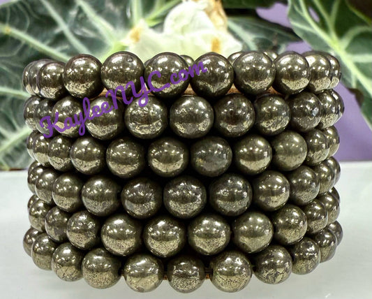 Natural Pyrite 8mm 7.5” Crystal Healing Stretch Bracelet
