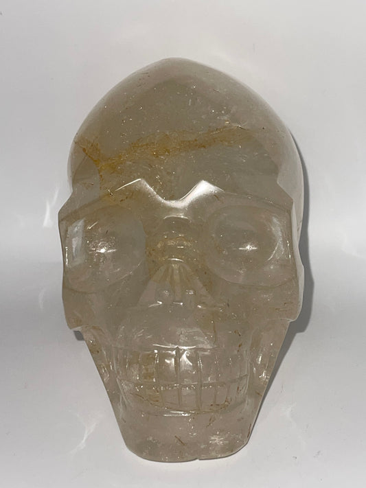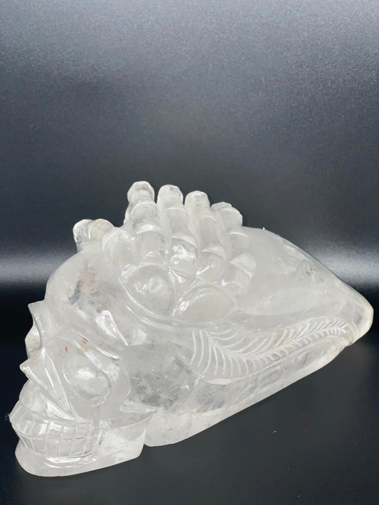 Clear Quartz Skull Head Large Carving with Hand Engraving