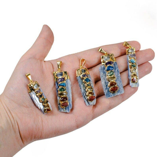 Crystal Raw Blue Kyanite Chakra Pendants Silver Gold Plated: Gold