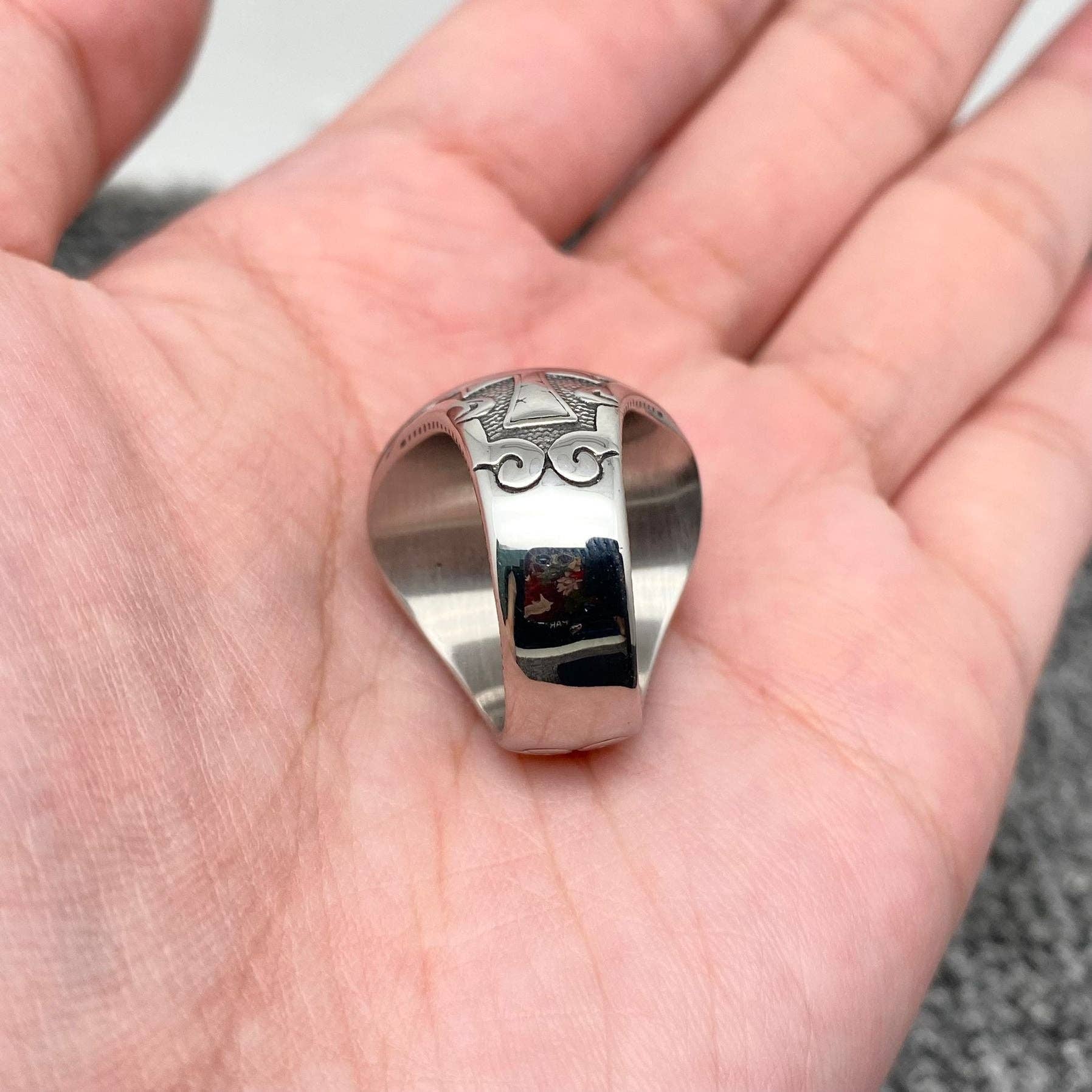 Ankh Double-headed Eagle Stainless Steel Ring - MJ/MR: 12