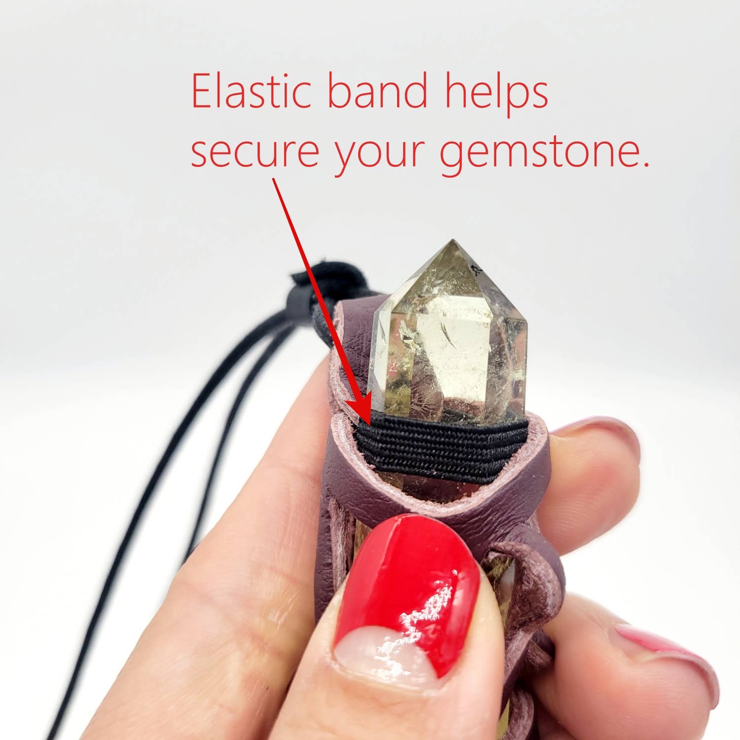 Carry the energy you desire everywhere you go with our Handmade Leather Gem Holders. These pouches are perfect for holding crystal towers, crystal points, mini massage wands, crystal obelisks, and much more, featuring an elastic band to securely hold your gems in place.