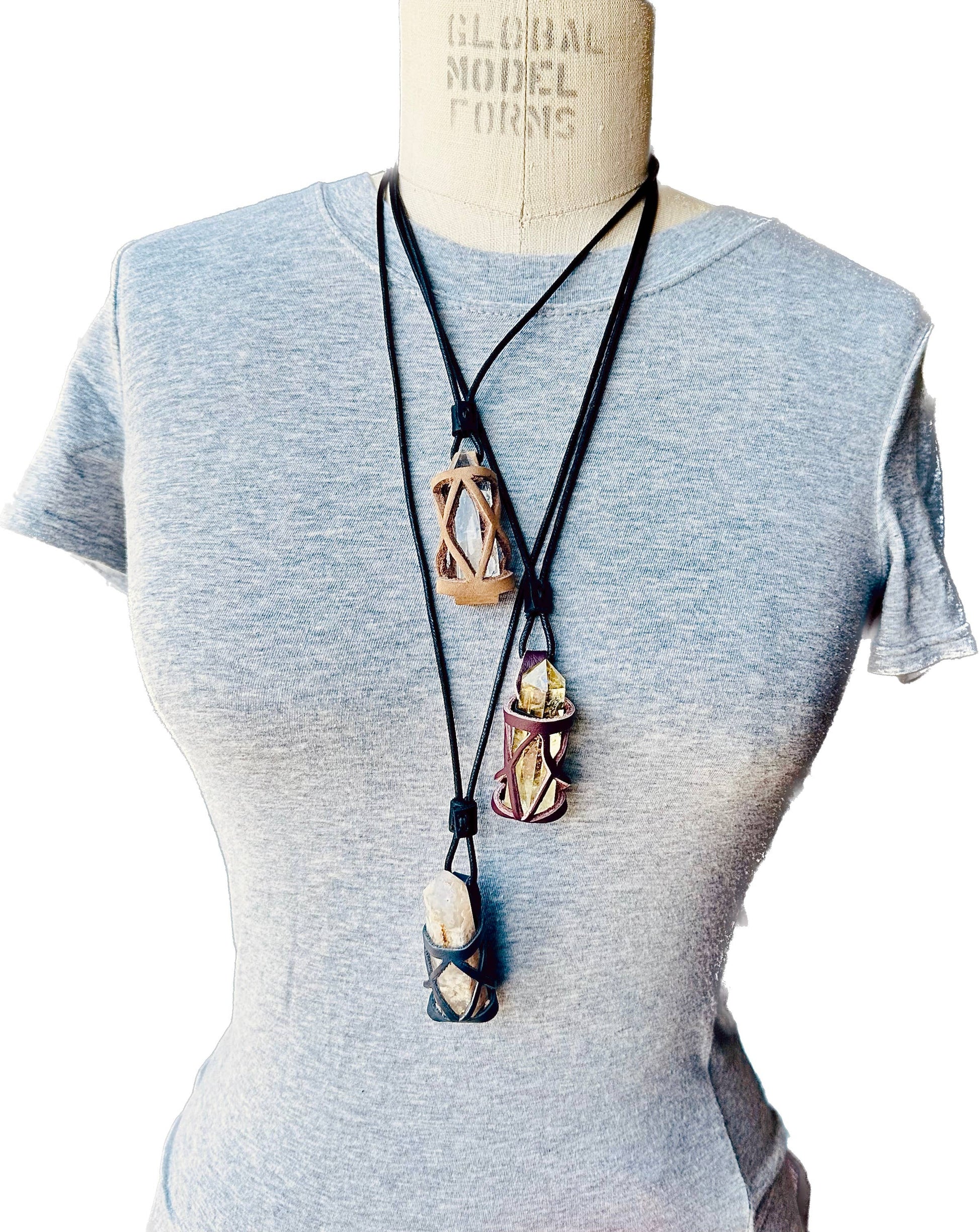 Gemstone or Crystal Holder Necklace. complete with stones.
