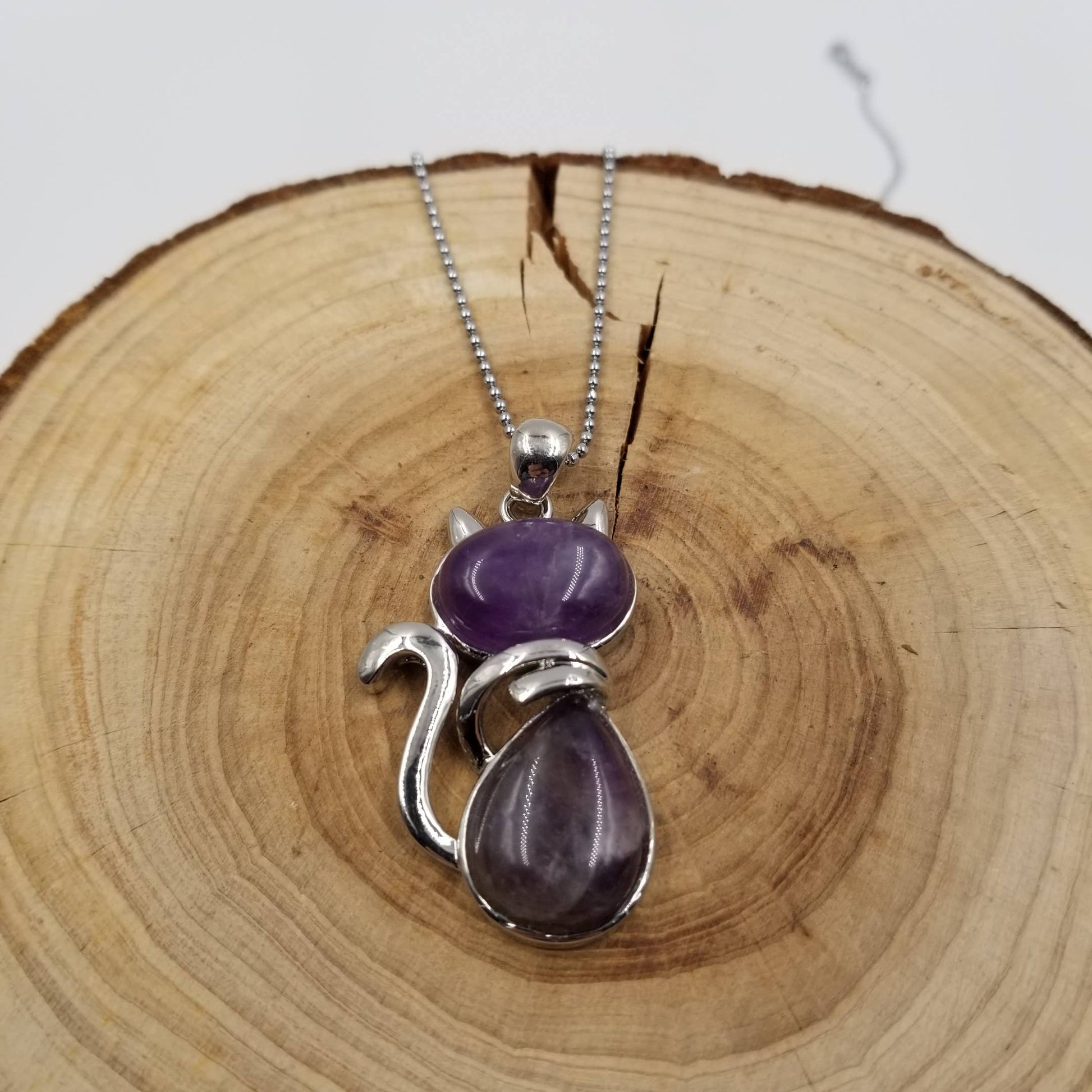 Natural Crystal Cat Pendant Necklace: Amethyst