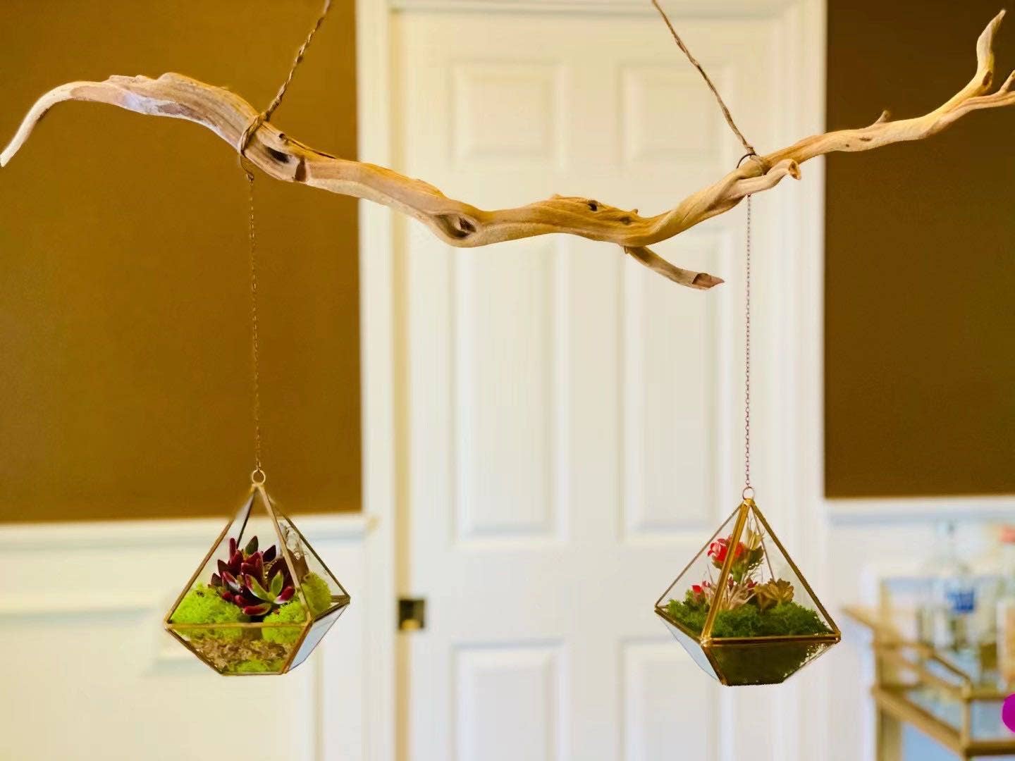 Size: width 6"(150 mm), height 8"(200 mm), frame length 2.75" and 2", varies slightly due to handmade process Feature: perfect for holding plants or other objects, serve as a stylish and modern style centerpiece by itself Use: fill with succulents, air plants, fern, cactus, artificial moss, candles or other decorative objects, ideal for use on shelves and windows ills, simple and versatile